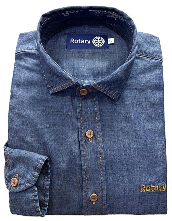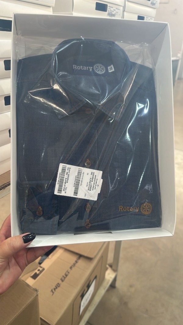 Logo Rotary bordado, manga longa, alto padrão