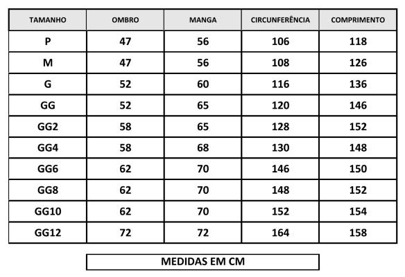 Tamanhos: P ao GG12.